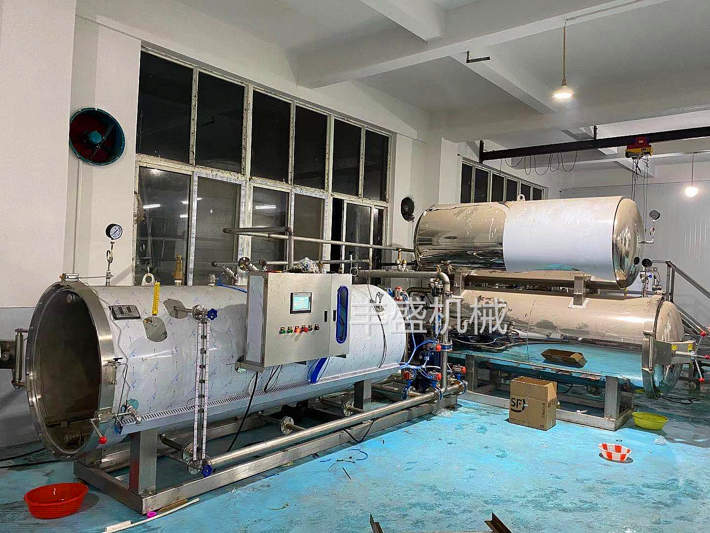 罐头生产的制作都是杀菌锅来进行杀菌,现在食品加工厂对罐头作常压水煮加热杀菌处理时都采用本形式的卧式杀菌锅,卧式杀菌锅通过引入压缩空气可实现反压杀菌.如冷却需在锅内进行,须用水泵打入锅顶部的喷水管(或采用水循环系统).