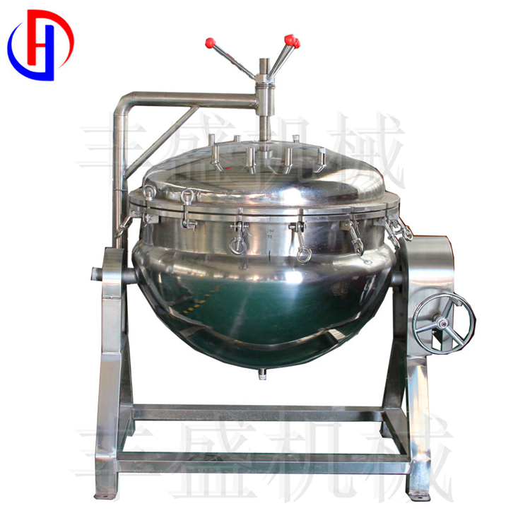 蒸煮锅又叫高压蒸煮锅、密封式蒸煮锅;应用于糖块、制药、乳品、酒类、糕点、蜜饯、饮料、罐头、卤味等食物的加工,也可用于大型餐厅或食堂熬汤、烧菜、炖肉、熬粥等,是食物加工进步质量、缩短时刻、改进劳动条件的良好设备。