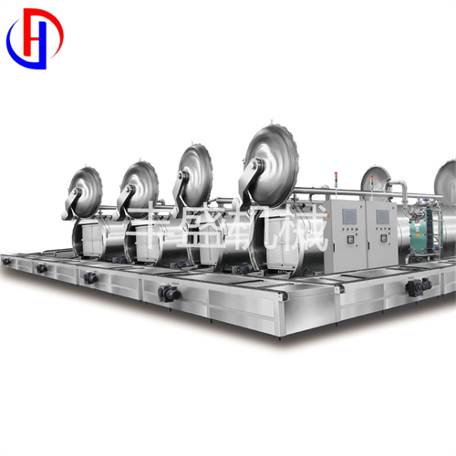 水浴式杀菌锅是通过直接注入蒸汽,使热水罐的水升温到预定温度,然后注入工艺罐,同时使锅内的工艺用水不断循环,并通过水汽混合器循环加热灭菌。从而缩短了杀菌时间,提高工作效率。杀菌的工艺水可循环使用,节省了能源、时间及人力、物力的消耗,降低了生产成本。