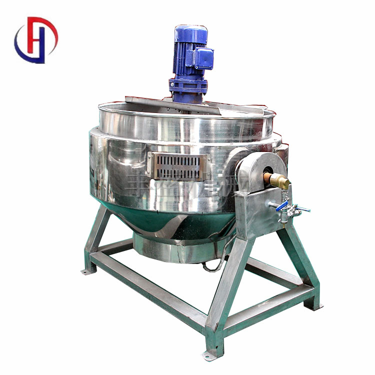 设备采用一次冲压成型的半球形不锈钢锅体,采用蒸汽、液化气、天然气等加热形式,搅拌方式采用特殊的倾斜式传动,使用的行星式搅拌器与锅体充分接触,实现传动公转与自转的不整数传动比,使锅内无搅拌死角。